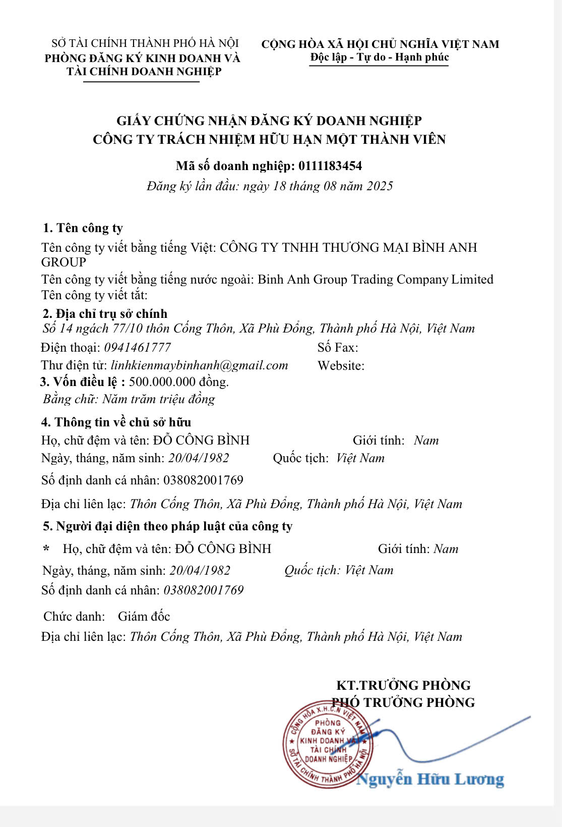 CÔNG TY TNHH THƯƠNG MẠI BÌNH ANH GROUP